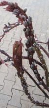 Forsyhtien / GoldglöckchenHaltbarkeit:Etwa eine WochePflege:Wasser etwa alle 2 Tage wechselnAngebotszeit:Ende Februar bis Anfang AprilIm Frühjahr 2015 werden wir nur wenig Forsyhtien ernten können.Weide-KätzchenHaltbarkeit:Oft über 2 WochenPflege:Wasser alle 2-3 Tage wechselnAngebotszeit:Februar bis AprilBänder-WeideHaltbarkeit:Oft über 2 WochenPflege:Wasser alle 2-3 Tage wechselnAngebotszeit:Februar und MärzKorkenzieher-StrauchHaltbarkeit:Oft über drei WochenPflege:Wasser alle 2-3Tage wechselnAngebotszeit:Vor Ostern zur Verwendung als Osterbäumchen Hagebutten:Haltbarkeit:Über eine WochePflege:Wasser alle 2-3Tage wechselnAngebotszeit:Ab Ende September (bis alle abgeerntet sind)Liebesperlen:Haltbarkeit:Etwa 2 WochenPflege:Wasser alle 2-3Tage wechselnAngebotszeit:Meistens etwa Ende Oktober (Abhängig vom Wetter im Herbst)